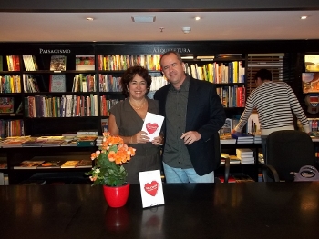 | Fabbio Cortez e a editora Lucia Koury, da Outras Letras | |